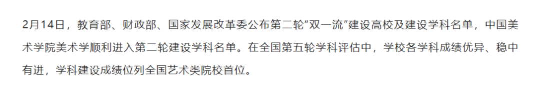 匯總17所高校在其官方微信公眾號或官網(wǎng)透露了學(xué)校在第五輪美術(shù)與設(shè)計學(xué)科評估中取得的成績,供各位考生及家長參考~1月7日,中國美術(shù)學(xué)院透露在全國第五輪學(xué)科評估中,學(xué)校各學(xué)科成績優(yōu)異、穩(wěn)中有進(jìn),學(xué)科建設(shè)成績位列全國藝術(shù)類院校首位。