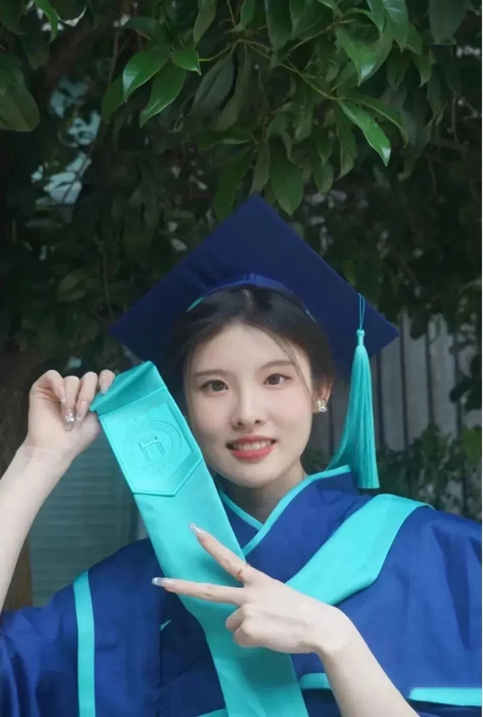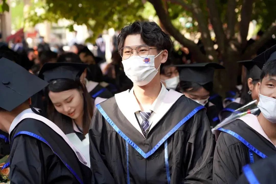 碩士學(xué)士服的區(qū)別在于,胸前的門襟顏色,變成了藍色,顯得更加沉著穩(wěn)重。