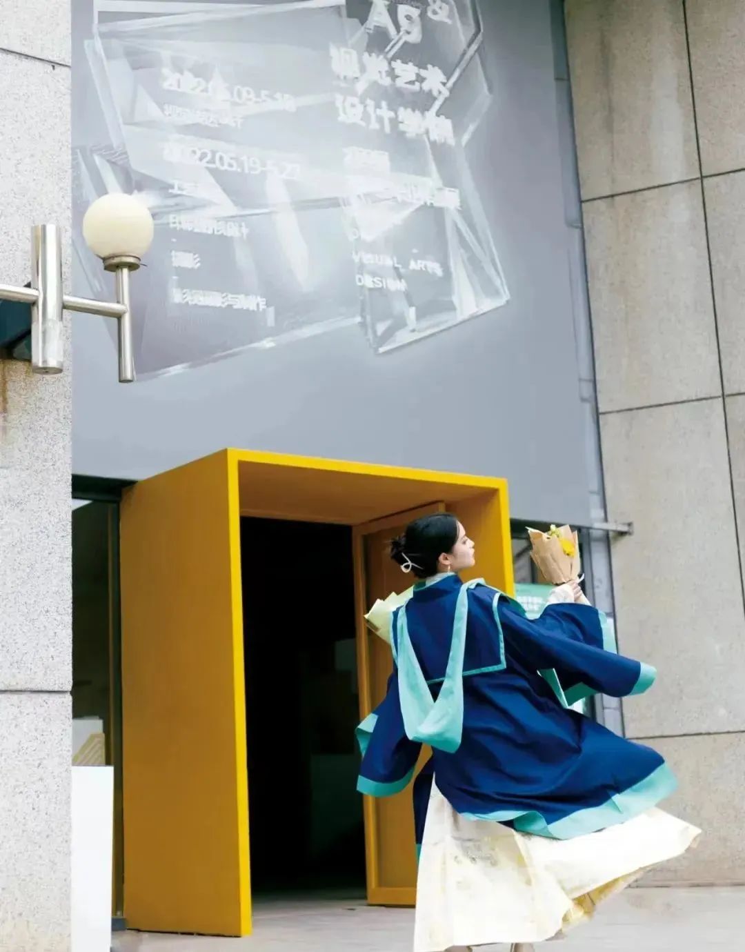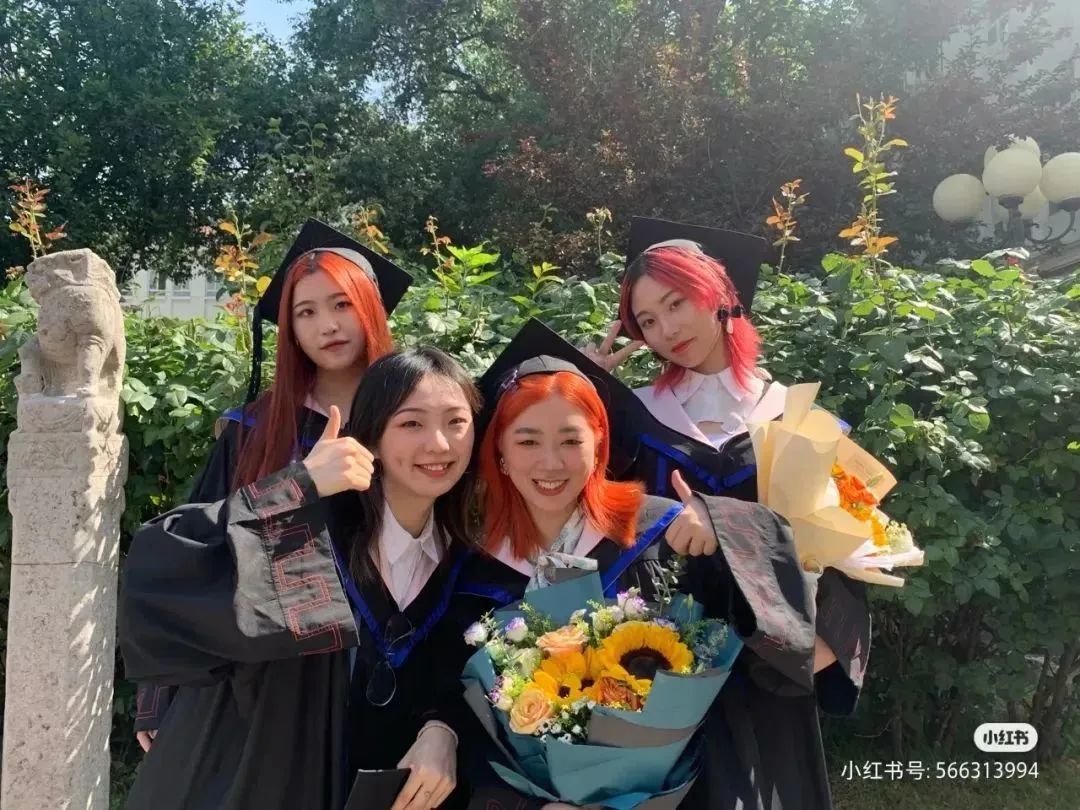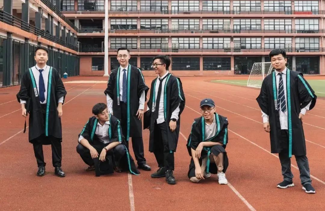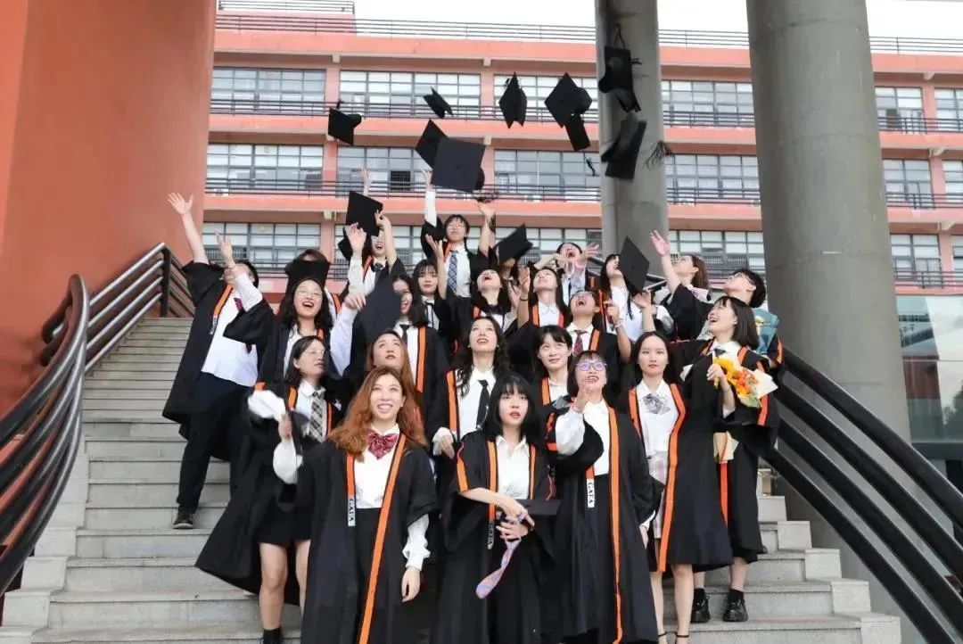 本科生學(xué)士服亮麗的橙色邊線設(shè)計,活力滿滿,讓人印象深刻,并且與教學(xué)樓顏色相襯映,展現(xiàn)了校園中青春、年輕的歡樂氛圍。