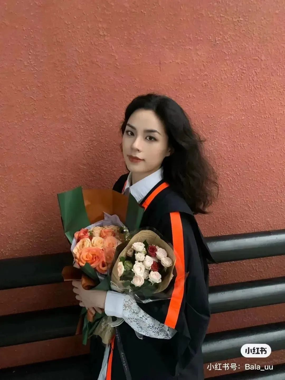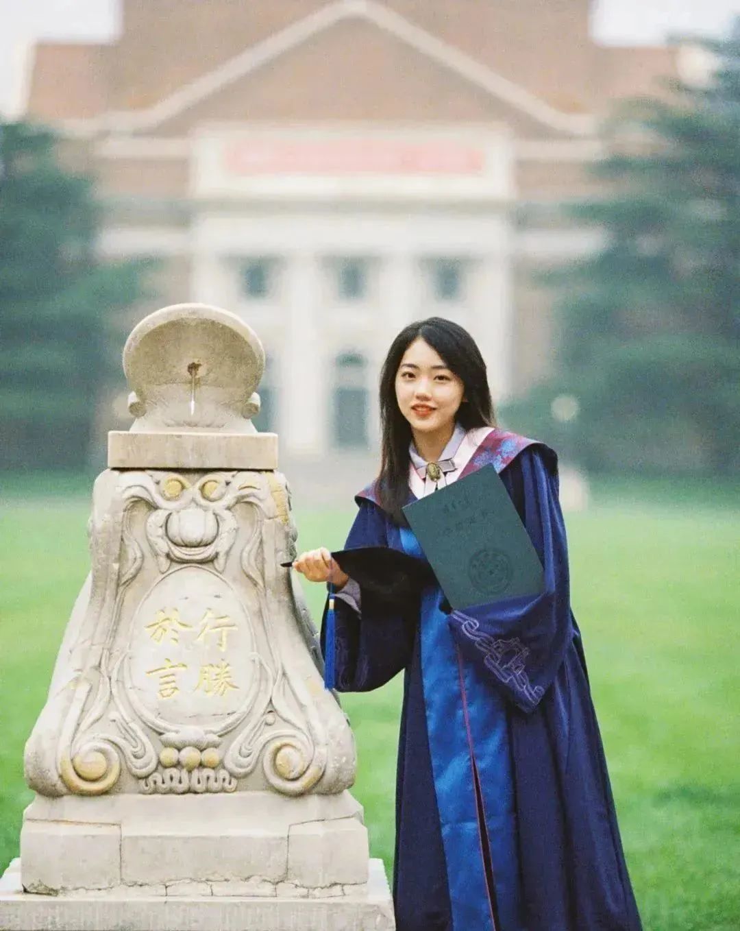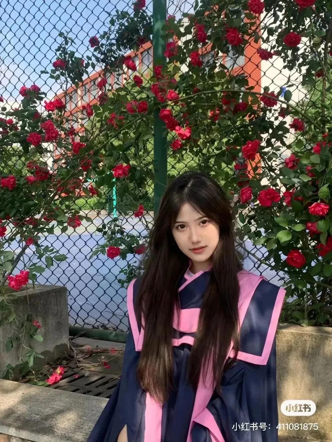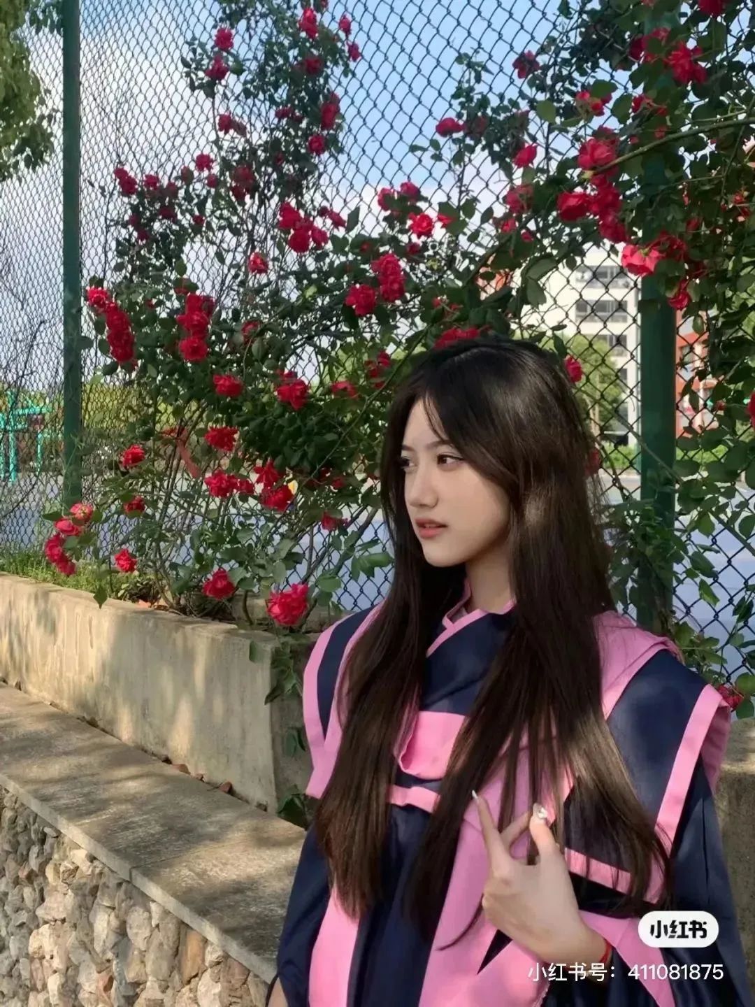 學(xué)士服披肩部分,主要以粉色和暗綠色組合,甜美與沉穩(wěn)質(zhì)樸相得益彰。學(xué)校足球場的球網(wǎng),是個拍照的好地方?,滿滿青春感。在草坪上隨手一拍,也特別有氛圍,愛了愛了,一時之間,不知是羨慕衣服好看,還是人好看了。
