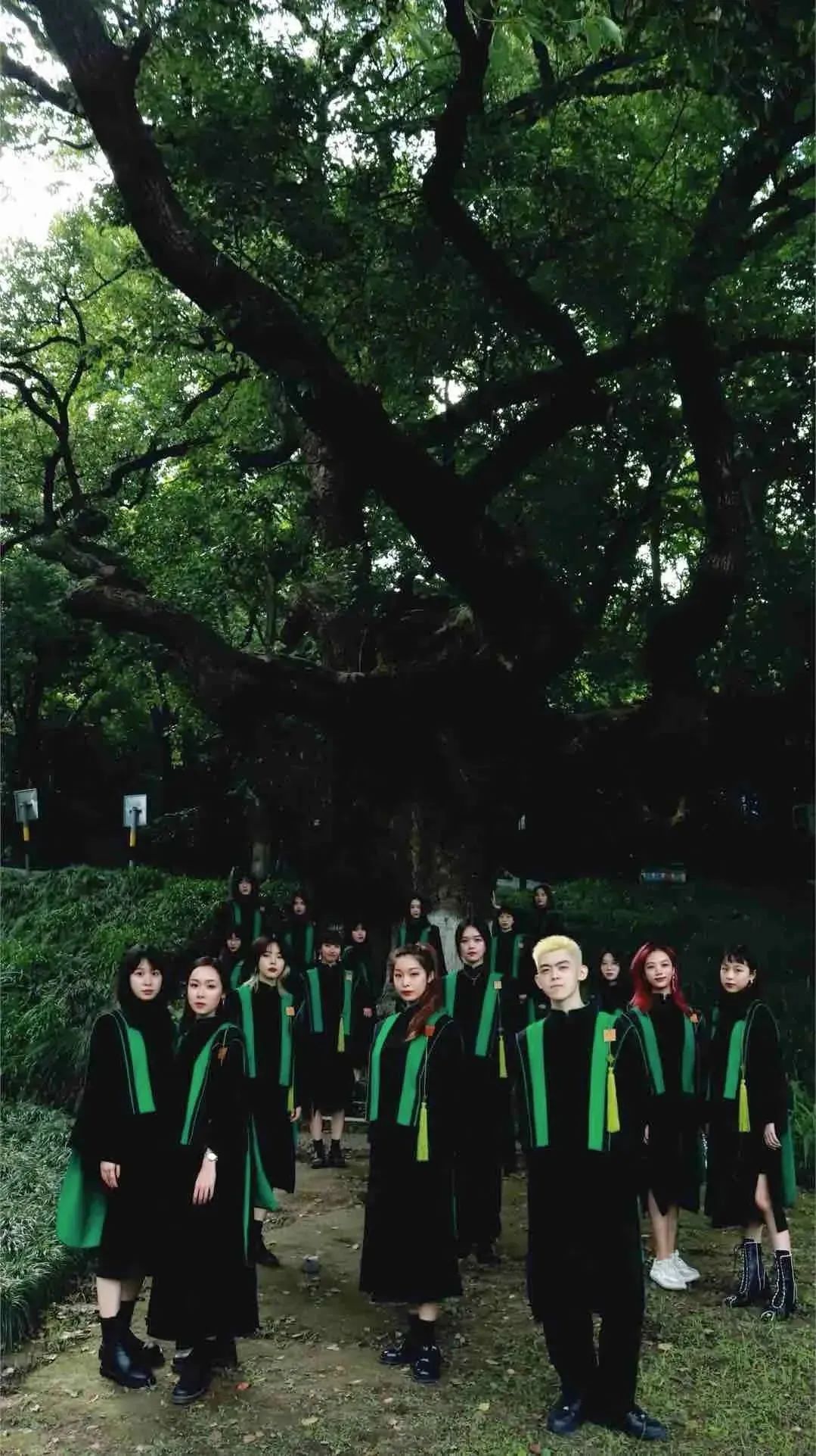 湖北美術(shù)學(xué)院學(xué)士服終于出新款啦,湖美魔法袍真的泰酷辣, 綠色本科、 藍色碩士、 粉色博士 、紫色工科。