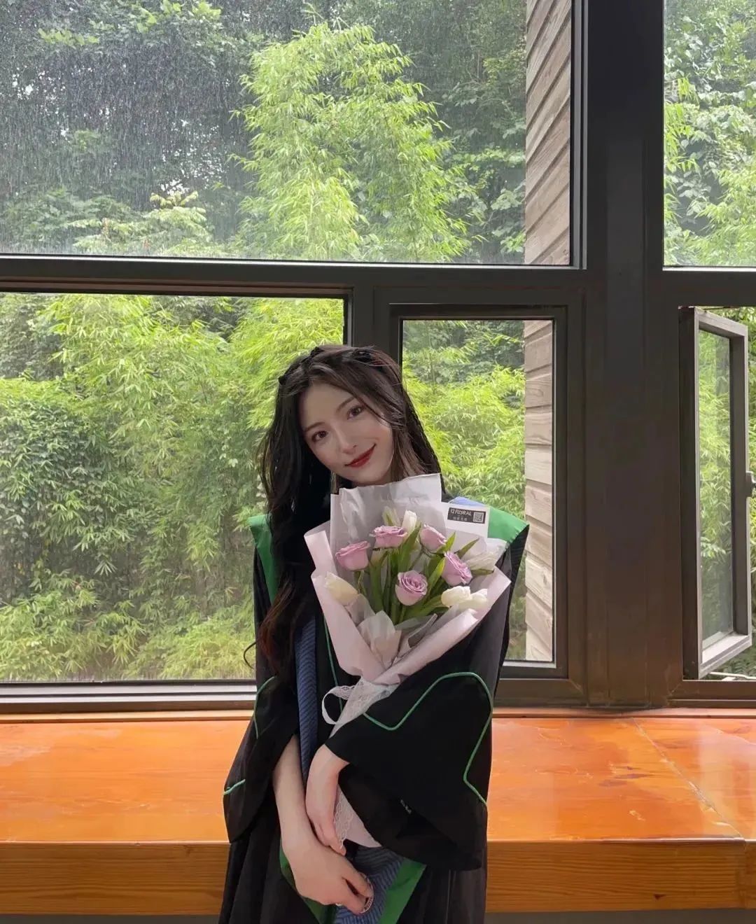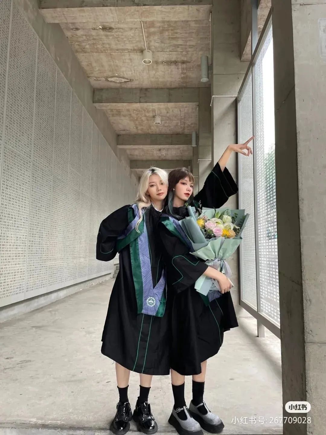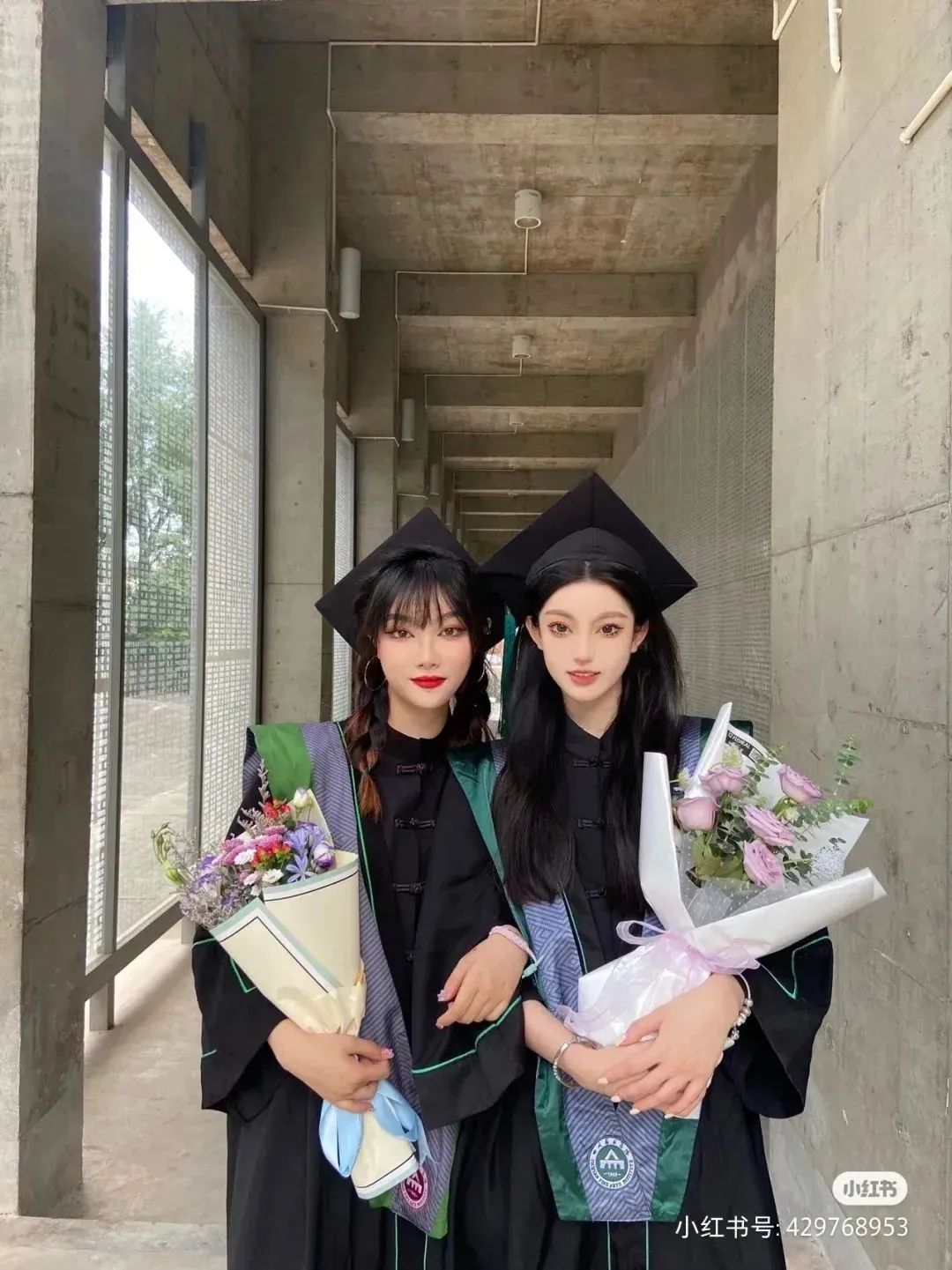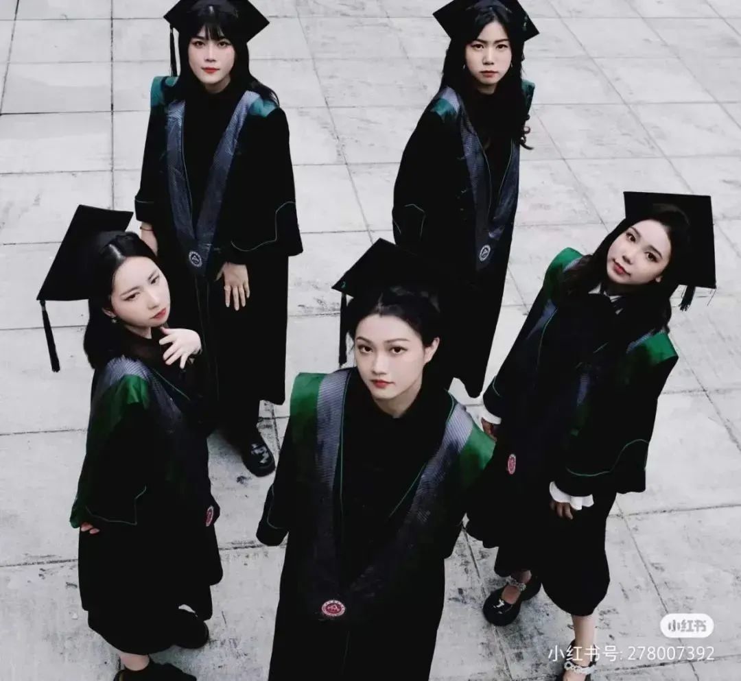研究生學(xué)士服邊線則為青綠色,寓意著探索與生長。