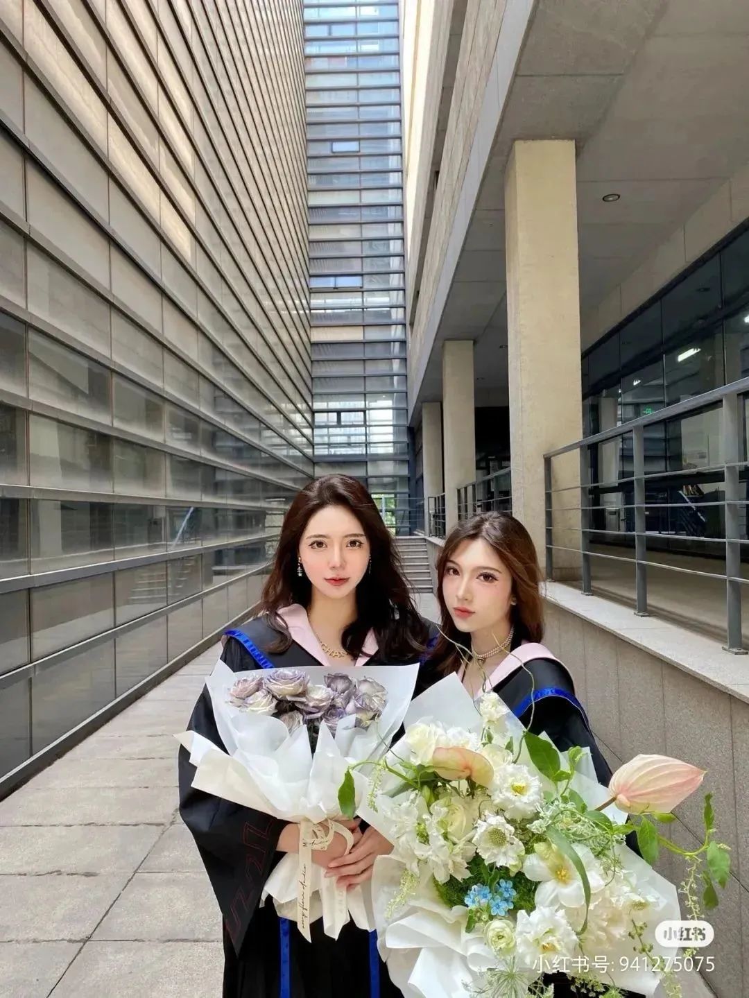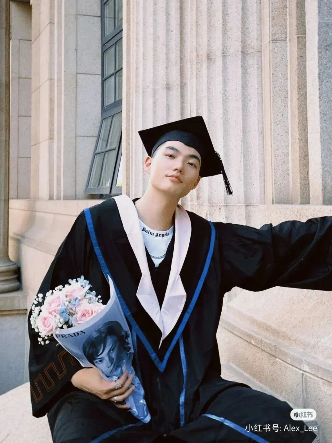 本科學(xué)士服,以黑色為主藍邊點綴,讓黑色沒那么沉悶。